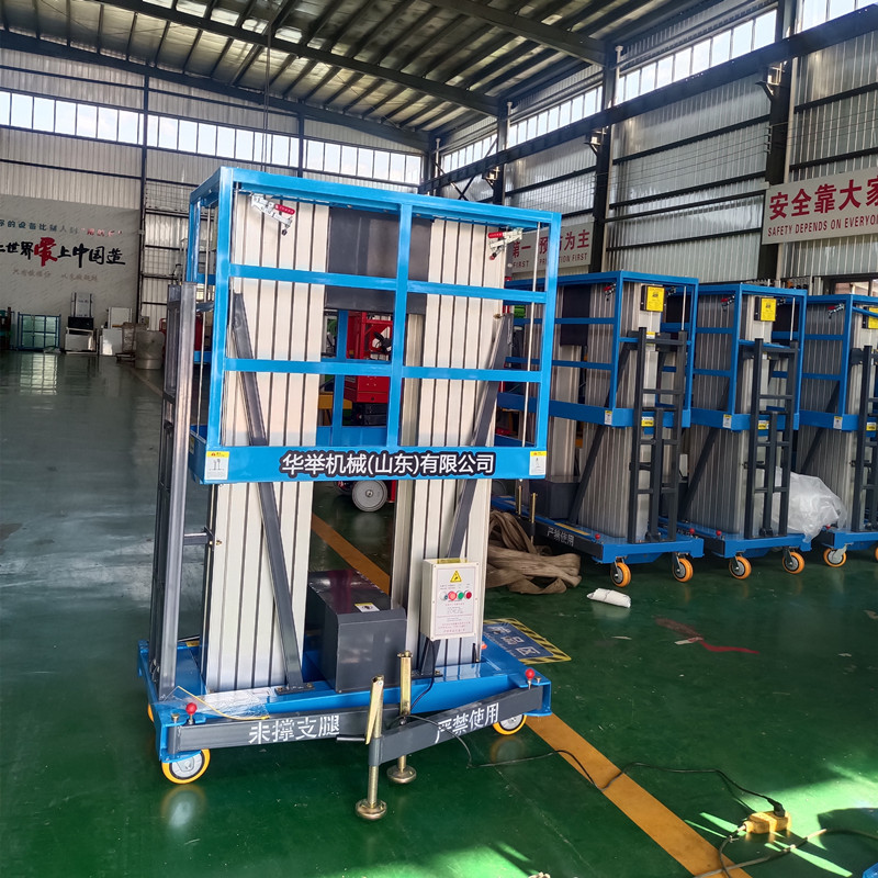 铝合金升降平台采用高强度优质铝合金材料,锰钢钢板加厚底盘和四个支撑腿支撑,安全可靠。设备标配下控和遥控方式升降,方便高空作业人员操作设备。设备体积小重量轻,使用轻便省时高效,非常适合进出狭小空间或电梯轿厢。