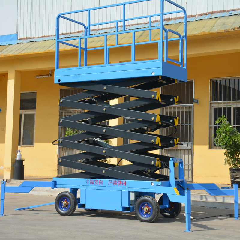 常规剪叉升降平台在使用前要把支撑腿撑开,如需移动需要将平台降下来并收起支撑腿才可以移动,产品的特点是载重大、价格便宜,适合大载重用户或升起后不需要移动的场所。