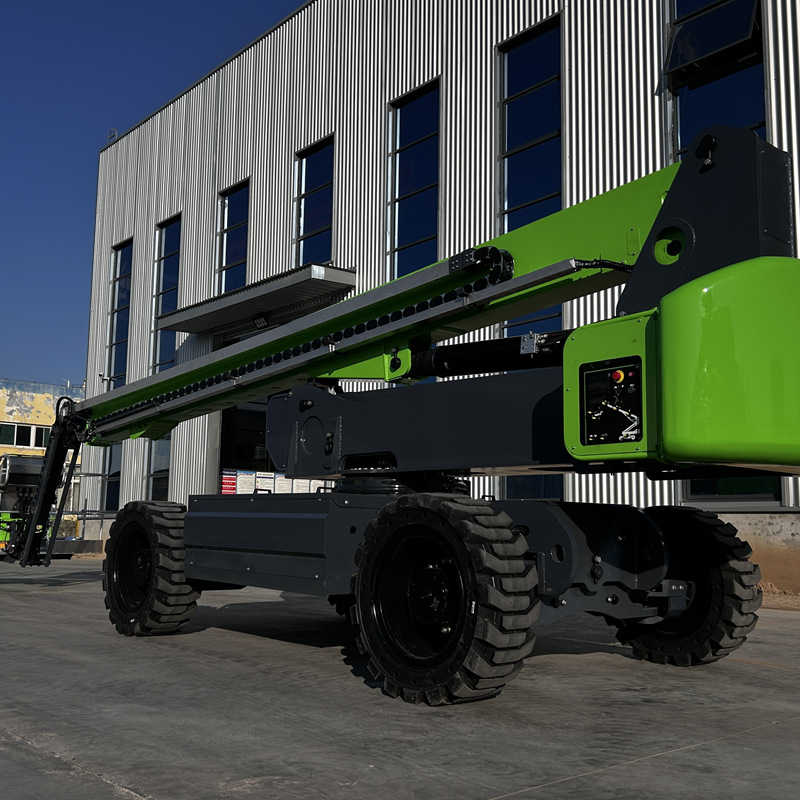 组合式臂架由双连杆塔臂+3 节伸缩臂+1 节小飞臂结构组成,实现了同级别直臂自行走式移动式升降工作平台整机存储高度最低,存储和运输更加方便。